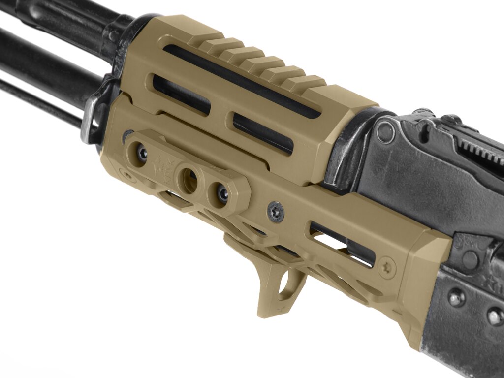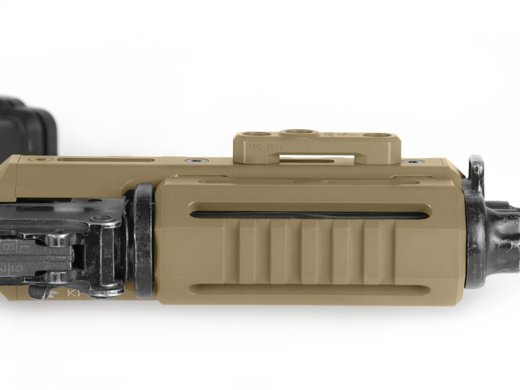 Montajul M-Lok asigură o conexiune fermă cu handguard-ul, patul sau șina. Construcția este concepută pentru utilizare intensă – fără bâlbe, fără strângeri de șuruburi dificile. Când este prins, rămâne așa cum trebuie. Indiferent dacă arma este purtată pe spate sau se mișcă repede din mână în mână în timpul schimbării cu un pistol.