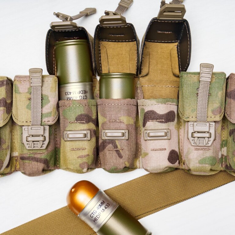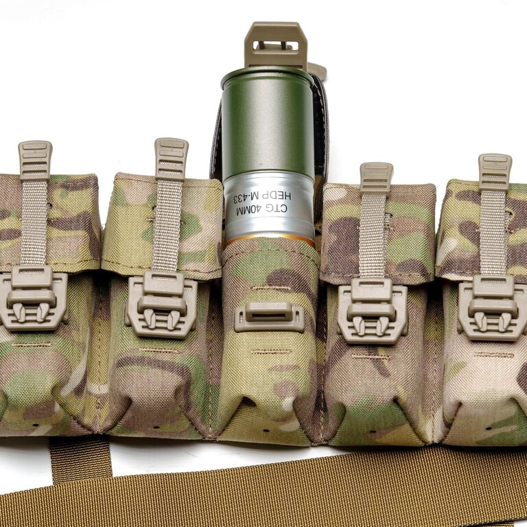 Bandolierul este echipat cu clapete de acoperire rezistente care protejează grenadele de praf, umezeală și daune mecanice. Cataramele cu eliberare rapidă permit un acces fulgerător la conținut atunci când fiecare secundă contează.