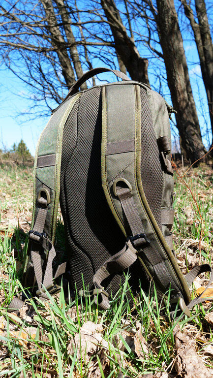 Accesul la spațiul de depozitare este asigurat de un fermoar de calitate cu clapă de acoperire pe ½ din circumferință. În interior găsiți suficient spațiu pentru o geacă de schimb, ceva de gustare și o sticlă cu apă. Dacă preferați mai degrabă un sistem de hidratare, îl puteți introduce în buzunarul din spate și scoateți furtunul de băut printr-un orificiu pregătit. Curelele de umar și spatele reglabile sunt plăcut căptușite și datorită suprafeței din plasă sunt și suficient aerisite. Pentru o fixare mai bună la spate în timpul mișcării active se poate folosi cureaua de piept reglabilă pe înălțime. Pentru distanțe mai scurte, puteți transporta rucsacul folosind mânerul întărit din partea superioară. O mare parte a feței frontale este acoperită cu sistem MOLLE compatibil, prin care se pot atașa diferite buzunare și alte accesorii compatibile. În față sunt plasate două curele de compresie cu cataramă rapidă, cu ajutorul cărora puteți reduce volumul său, dar sunt utile și pentru prinderea unei jachete. Un accesoriu util este și panoul velcro din față pentru plasarea identificării ID.
