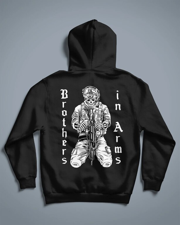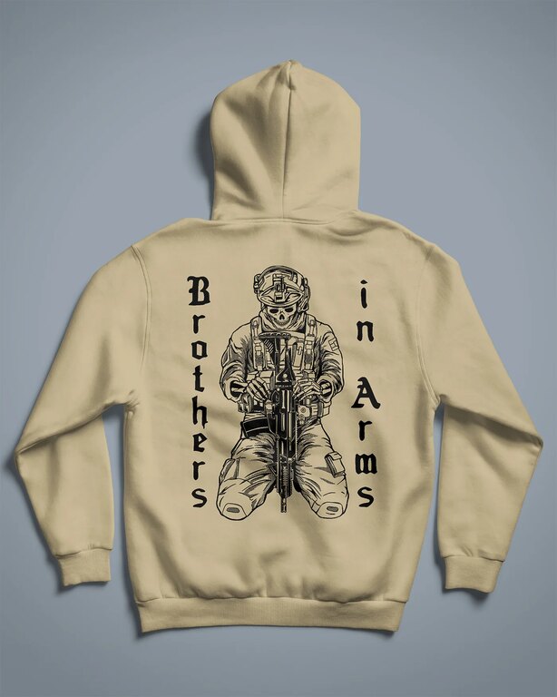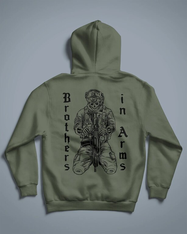 Frăția nu este doar un cuvânt. Este un angajament care persistă chiar și acolo unde nu se mai aude nimic altceva. Hanoracul Brothers in Arms poartă acest spirit cu mândrie – fie că sunteți afară în condiții meteo nefavorabile, la muncă sau savurați o seară liniștită acasă. Oferă confortul care te susține și stilul care nu te trădează.