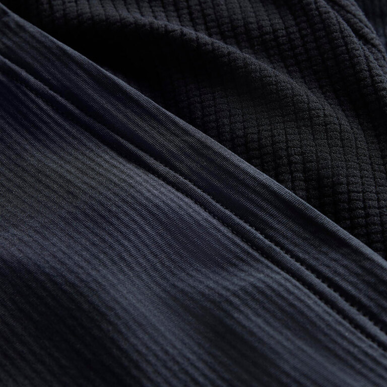 Amestecul elastic de poliester reciclat și elastan asigură libertatea totală de mișcare. Hanoracul este cusut cu cusături plate Flatlocked, care nu apasă nici măcar la purtarea cu un rucsac. Croiala tehnică își menține forma și nu se ridică nici când brațele sunt ridicate sus deasupra capului.