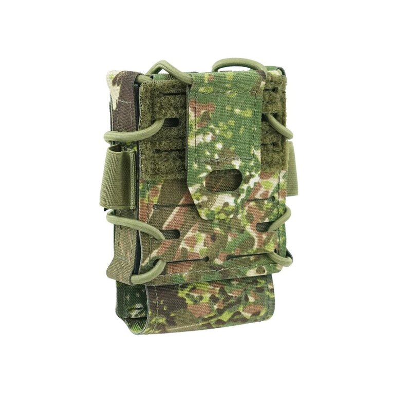 Noul model de suport de la compania Templars Gear este caracterizat de o construcție flexibilă elaborată, datorită căreia puteți plasa în el aproape orice stație radio personală standard. Este atât de universală încât este potrivită și ca geantă pentru încărcătoare AR 15/AK. Construcția simplă cu un singur compartiment este fabricată din laminat Cordura 500 foarte rezistent, cu întărituri din plastic. Designul sofisticat și materialele de înaltă calitate asigură atât rezistența mecanică, cât și confortul la utilizare. Un element foarte important al genții este sistemul de ajustare laterală, care previne căderea accidentală a conținutului. Acest sistem este bazat pe cordon bungee reglabil și benzi velcro. În plus, partea inferioară a buzunarului este reglabilă cu ajutorul benzii velcro, ceea ce permite ajustarea lungimii stației radio. Pe cadrele laterale sunt bucle de trecere din material elastic, care pot fi folosite pentru a transporta obiecte lungi sau pentru a organiza cabluri. Sistemul de fixare este format din două curele care servesc la prinderea pe buclele MOLLE de pe vestă tactică sau alte elemente de echipament. Pentru asigurarea suplimentară a stației radio, există o clapetă elastică suprapusă, care vă asigură că nu o veți pierde nici în mișcare activă. Toate materialele folosite au fost tratate cu un finisaj IRR care reduce reflexia în spectrul infraroșu. Produsul astfel îndeplinește standardele ridicate privind efectul de camuflaj în fața dispozitivelor IRR de vedere pe timp de noapte.