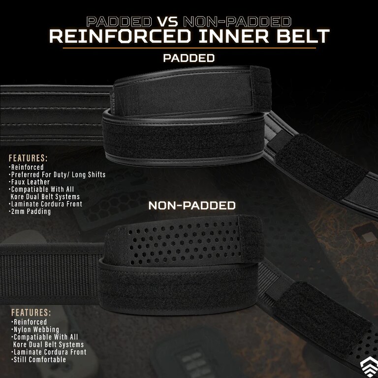 Când nu este necesară utilizarea întregului sistem cu cureaua exterioară, cureaua interioară neîntărită poate fi folosită singură. Aspectul de profil redus are un aspect civil, se potrivește în pantaloni obișnuiți și oferă confort și siguranță, standarde ale produselor Kore.
