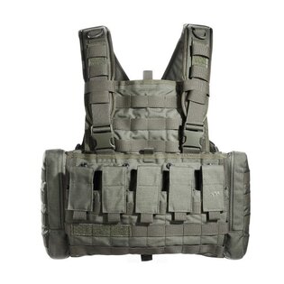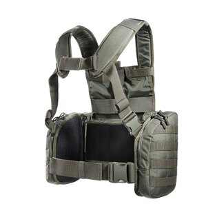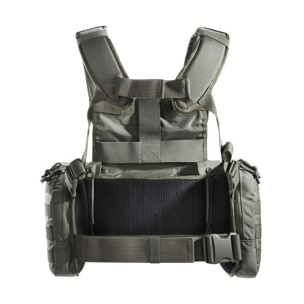 Datorită construcției ușoare și bretelelor de umăr reglabile, purtarea acestui Chest Rig este confortabilă chiar și în cele mai dificile condiții și orice vreme. Partea interioară care stă pe corp are un suprafață moale de plasă pentru o mai bună ventilație și bretelele căptușite nu apasă nici atunci când sunt complet încărcate. Cu ajutorul centurii lombare cu sistem de închidere rapidă și a curelei toracice cu velcro, se poate regla perfect tot ansamblul conform nevoilor individuale.