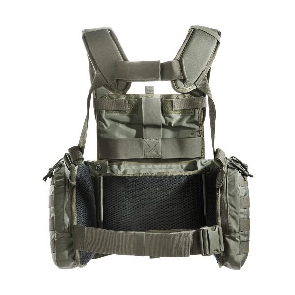 Dispozitivul de purtare pe piept este proiectat pentru a oferi purtătorului cel mai înalt confort posibil. Bretelele de umăr și zona șoldurilor sunt căptușite și complet reglabile. Astfel, nu este o problemă să ajustați toate dimensiunile pe măsură. În cazul în care aveți nevoie de protecție sporită, puteți introduce o plăcuță balistică în buzunarul de protecție de pe piept. Dacă nu aveți nevoie de protecție balistică, puteți folosi buzunarul pentru depozitarea documentelor, hărților și altor echipamente „administrative”.