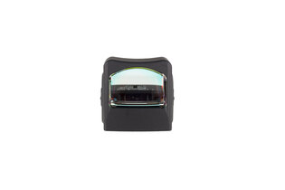 RMRcc oferă un punct roșu clar cu un diametru de 3,25 MOA. Odată reglat, lovitura va merge acolo unde țintești – fără să pierzi contactul cu ținta. Datorită opticii cu suprafață multistratificată, imaginea este clară, contrastantă și fără distorsionări, astfel încât trăgătorul are situația complet sub control chiar și în lumina schimbătoare.