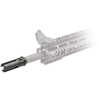 Flacără redusă, țintă fixă, tragere mai rapidă. Compensator pe amortizor Warcomp / calibrul .223" SureFire combină funcțiile de suprimare a flăcării și compensarea reculului. Menține arma în axă, ascunde poziția trăgătorului și ajută la vizualizarea țintei chiar și pe timp de noapte.