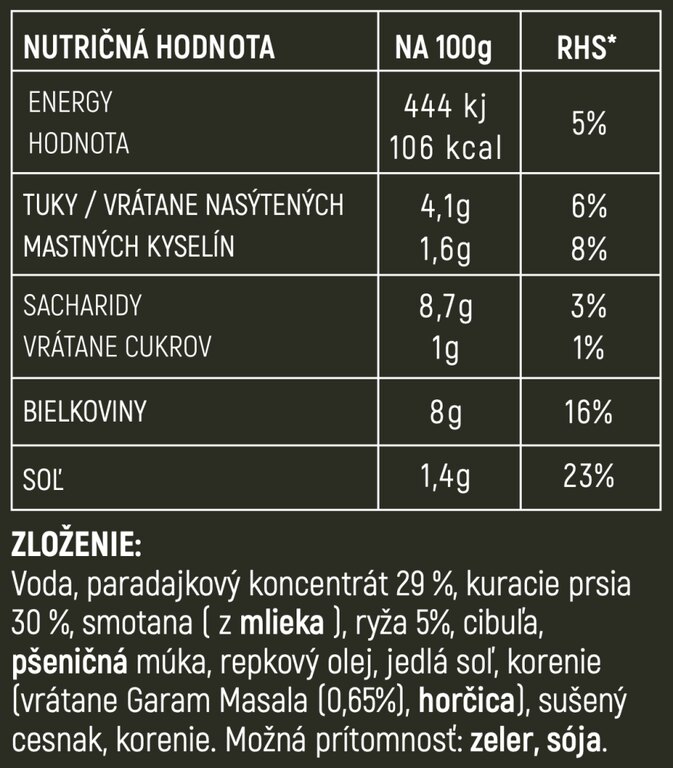 Chicken Masala este o masă consistentă și hrănitoare, care reface forțele chiar și în condiții solicitante. Datorită duratei lungi de viață, este potrivită pentru mașină, rucsac sau atelier – practic oriunde nu este timp sau loc pentru gătit clasic.