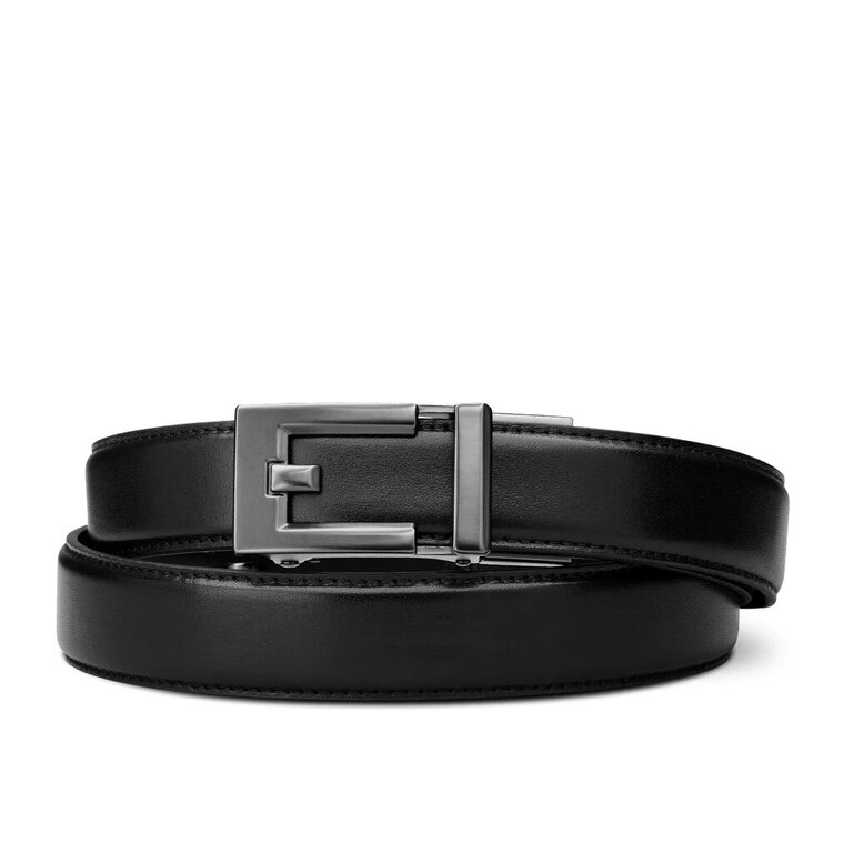 Această curea cu o lățime de 1,125" (aproximativ 2,86 cm) are o șină ascunsă cu peste 40 de puncte de ajustare și micro-creșteri de aproximativ ¼" (circa 0,64 cm). Astfel, puteți ajusta mereu cureaua pentru o potrivire perfectă. După un prânz copios, puteți slăbi cureaua, iar în momentele în care aveți nevoie să susțină bine pantalonii, o puteți strânge din nou. Această soluție oferă, în plus, un aspect minimalist – pe curea nu veți găsi nici o gaură.