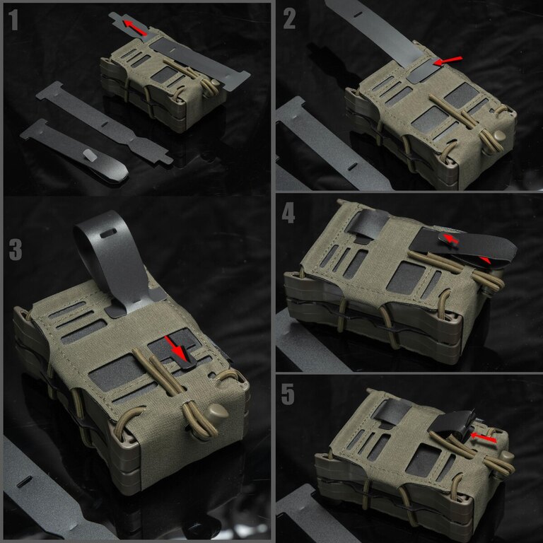 Specificații suplimentare | Curea A: Potrivit pentru carcase mici care ocupă pe înălțime 2 câmpuri MOLLE Curea B: Potrivită pentru tocuri medii care ocupă pe înălțime 3 rânduri MOLLE Curea C: Potrivit pentru huse mai mari care ocupă 4 câmpuri MOLLE pe înălțime |