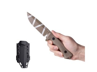 | Specificații suplimentare | Lamele: drepte Duritate oțel - lame: 59 HRC până la 60 HRC Construcție fulltang Protecție simplă pentru mâner (extinsă pe lamă) Mâner cu textură pentru o prindere sigură și stabilă. Jimping-ul de pe spatele lamei ce trece pe mâner permite utilizatorului să exercite presiune pe lamă și să ghideze cuțitul cu degetul mare sau arătătorul, iar jimping-ul de pe spatele mânerului permite ghidarea cuțitului cu palma sprijinită. Spărgător de geamuri la capătul mânerului Orificiu la capătul mânerului pentru șnurul de siguranță Produs în Cehia |