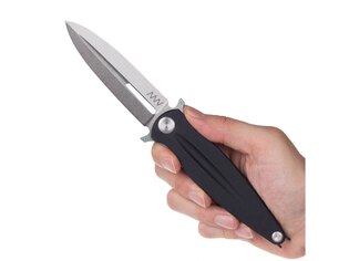 Mânerul cuțitului este realizat din duralumin rezistent. Datorită calității materialelor utilizate, aveți siguranța că cuțitul va rezista mulți ani. Este alegerea ideală pentru toți cei care caută un cuțit pliabil ușor, dar rezistent, pentru utilizare zilnică. Lama cuțitului este realizată din oțel de calitate Sleipner și este în stil Daggen, adică pumnal.