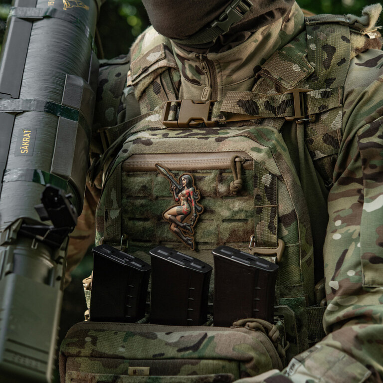 Patch-ul Tactical Girl RPG M-Tac este o combinație ascuțită de stil Pin-Up, determinare și simbolistică de luptă. Aduce un motiv carismatic care iese imediat în evidență pe echipament și îi conferă un caracter aparte.