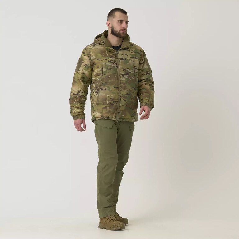 Helikon-Tex Level 7 în camuflaj Multicam nu este doar o jachetă obișnuită – este echipament pentru situații în care temperatura scade adânc sub zero și confortul decide performanța. Este construită pe sistemul ECWCS și formează ultimul strat de apărare împotriva frigului, vântului și umidității. Păstrează corpul cald chiar și acolo unde celelalte straturi se opresc.