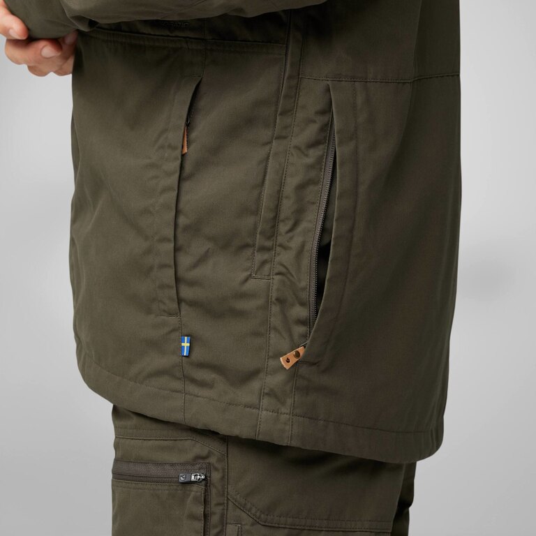Această jachetă este bine gândită și, astfel, oferă purtătorului protecție împotriva diverșilor factori externi. De exemplu, poate izola, chiar și când este umedă, și se usucă rapid. Este rezistentă la uzură și chiar și împotriva țânțarilor, datorită țesăturii sale dense. În plus, materialul nu permite trecerea radiațiilor UV și, dacă pe parcursul timpului și în urma utilizării își pierde unele dintre proprietățile sale unice, acestea pot fi restaurate cu ajutorul impregnării naturale Greenland Wax.