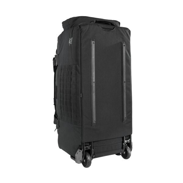 Capacul cu acces la compartimentul principal este închis cu ajutorul unui fermoar robust YKK și asigurat cu două curele de compresie cu catarame din plastic. Pe capac și deasupra buzunarului lateral cu fermoar sunt panouri velcro pentru identificare ID. Pentru a introduce datele de identificare sau documentele, există și o fereastră din vinil de dimensiune A5 pe partea superioară. Spațiul principal de depozitare al geamantanului nu este împărțit prin perete despărțitor, dar are pe laterale numeroase buzunare elastice, un buzunar din plasă cu fermoar sub capac și curele de compresie pe fund. Pe una dintre laturi se află un alt buzunar spațios cu fermoar cu buzunare interioare și un sistem MOLLE pe partea exterioară la care puteți atașa alte huse. Pentru a întări structura și a facilita transportul, geamantanul este echipat cu un cadru din aluminiu cu roți integrate și un mâner întărit pentru tragere. În cazul în care nu transportați o încărcătură grea, se poate îndepărta cu ușurință întregul cadru din aluminiu cu roți, iar geamantanul poate fi purtat cu ajutorul a două curele.