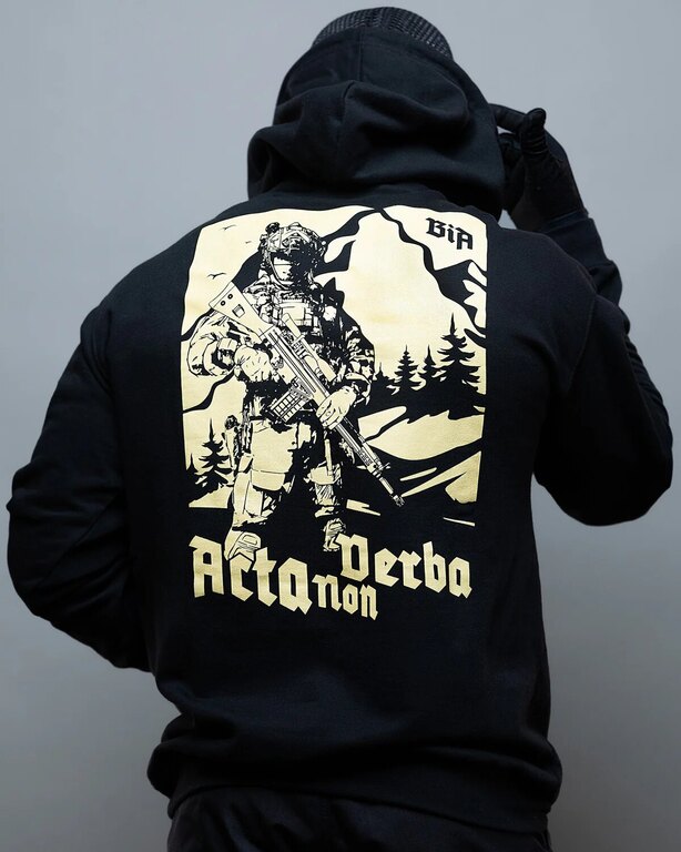 Inscripția de pe piept durează la fel de mult ca determinarea dumneavoastră. Brothers in Arms folosesc cerneală germană aleasă manual, care nu strigă în lume, dar vorbesc clar despre calitate. Indiferent dacă purtați hanoracul pe ploaie, praf sau la tras de fiare, inscripția rămâne. La fel ca valorile dumneavoastră.