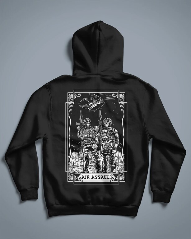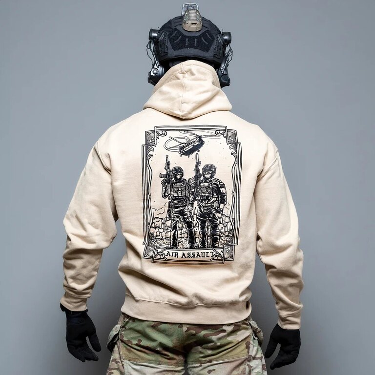 Hanoracul Air Assault este un omagiu adus celor care nu intră în acțiune pe ușă – ci cad din cer. Designul a fost creat în colaborare cu frații de arme de la Trace și aduce un omagiu unităților de parașutiști. Indiferent dacă susțineți parașutiștii sau sunteți implicat personal, această piesă vorbește pentru voi.