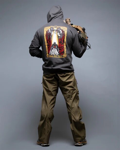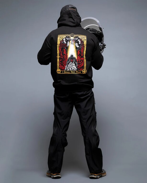 Inspirația a fost un vers din Psalmul 23 – „Nu mă tem de rău”. Reamintește că curajul nu este absența fricii, ci capacitatea de a merge înainte în ciuda acesteia. Hanoracul No Fear este destinat celor care stau ferm – fie pe stradă, în sală, sau în viață.
