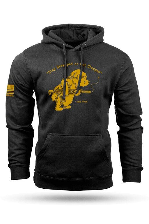 Pe partea din față a hanoracului Nine Line Pooh Bear se află un grafic de succes, care îl arată pe ursulețul Pooh apărându-și casa noaptea cu o armă de foc în mână. Chiar și un pacifist ca ursulețul Pooh se poate supăra serios când vede nedreptate și fărădelegi. Deasupra ursulețului se află inscripția „Stay Strapped or Get Clapped”, care ar putea fi tradusă destul de liber ca „fii pregătit sau vei fi atacat”.