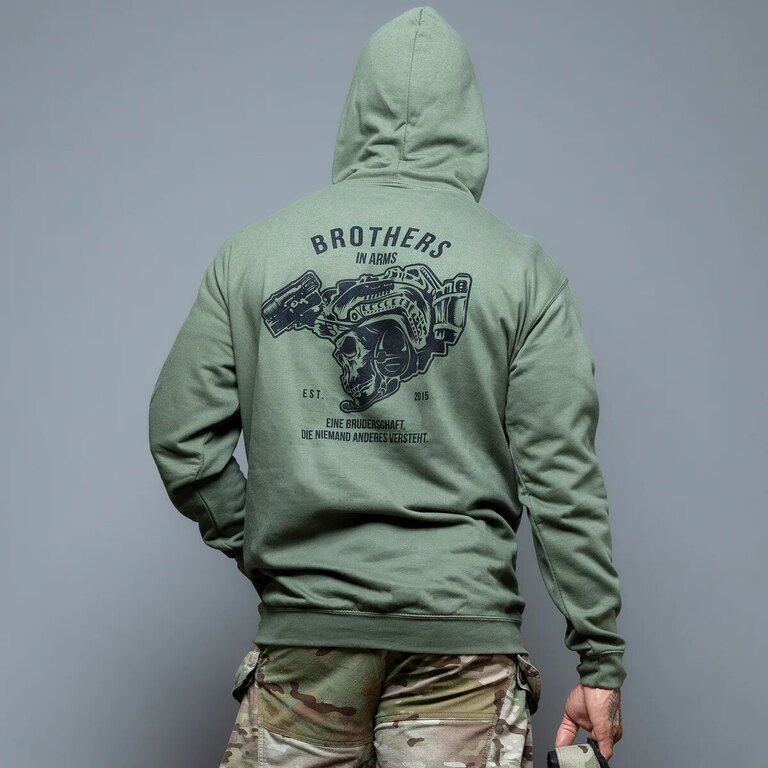 Această hanorac este începutul a tot. Hanoracul Team poartă logo-ul original Brothers in Arms și ne amintește de unde venim - și de ce suntem aici. Inscripția „Eine Bruderschaft die niemand anderes versteht” înseamnă: Frăție pe care nimeni altcineva nu o poate înțelege. De aceea, Brothers in Arms au lăsat-o în germană. Pentru că frăția nu are nevoie de traducere. Are nevoie de loialitate, acțiuni și un scop comun.