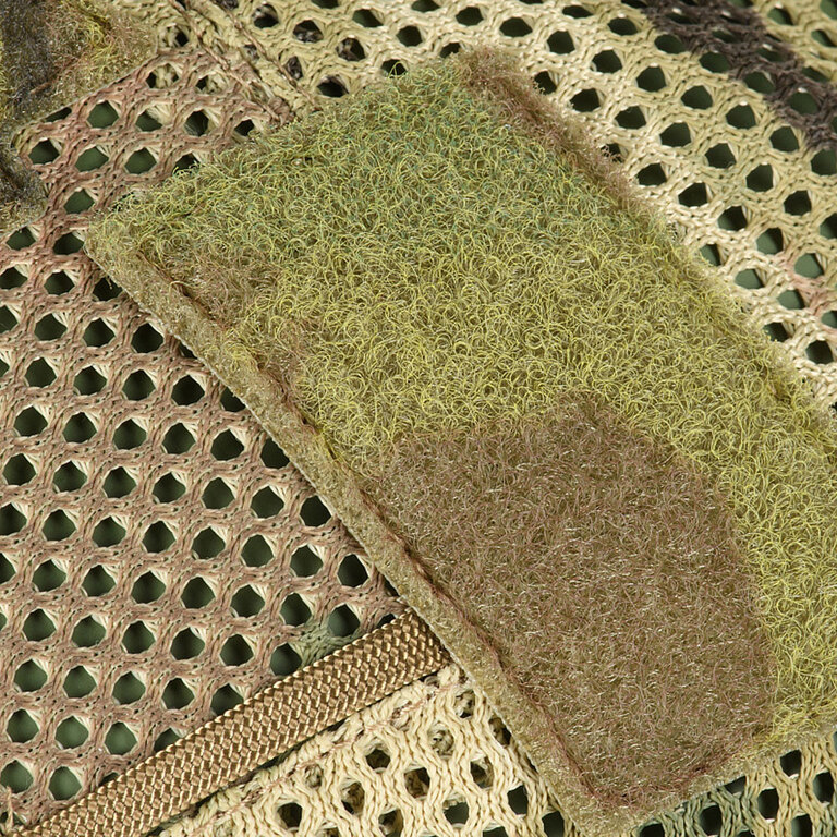 Husa de camuflaj este confecționată dintr-un material rezistent, care face față abraziunii și uzurii obișnuite. Materialul asigură o durată lungă de viață chiar și în cazul utilizării frecvente pe teren și își păstrează forma și culoarea. Husa se curăță ușor și contribuie la menținerea echipamentului tactic în stare bună.
