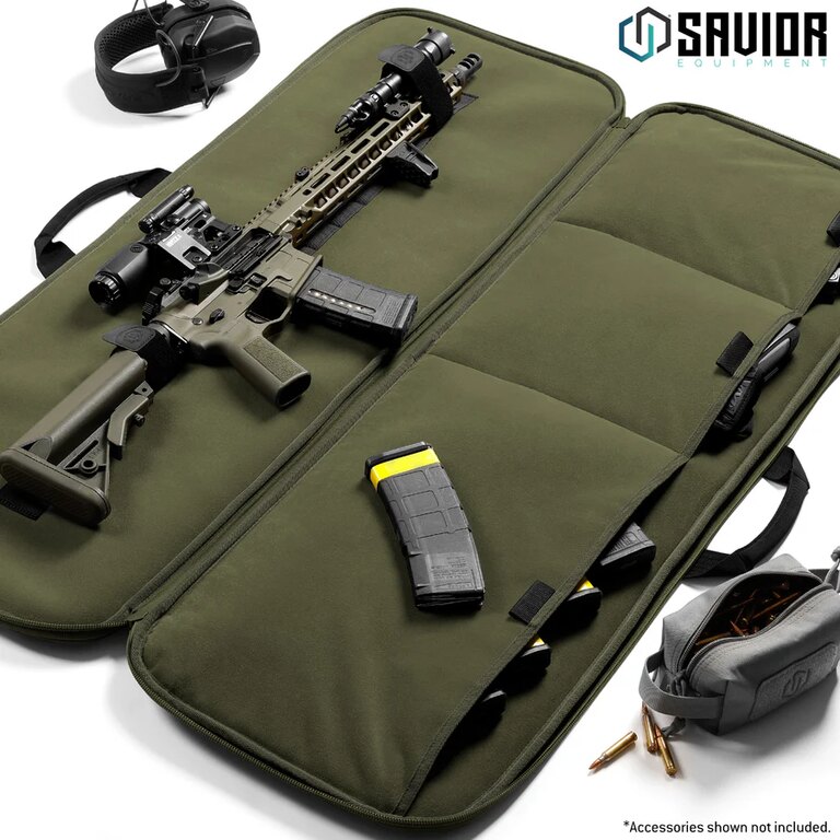 | Dimensiuni detaliate | Dimensiunile interioare ale compartimentului principal: 129,5 cm × 34,3 cm Lungimea maximă a armei: 124,5 cm Buzunare interioare mai mici (2×): 27,9 cm × 24,1 cm Buzunar interior mai mare: 27,9 cm × 55,9 cm |