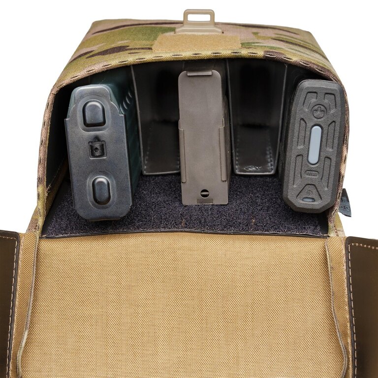Această carcasa este fabricată din materiale de înaltă calitate care rezistă în condiții și sarcini dificile. Modelele de camuflaj disponibile oferă o camuflare excelentă în diferite medii. Construcția este proiectată pentru a asigura compatibilitate maximă cu sistemele moderne de purtare (MOLLE/PALS).