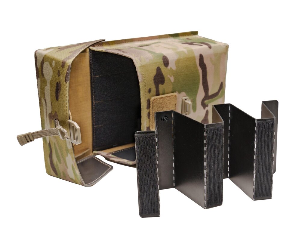 Datorită mecanismului de eliberare rapidă, aveți acces ușor la muniție în câteva secunde. Clapeta completă protejează suplimentar conținutul de praf, umiditate și murdărie, garantând funcționalitate perfectă chiar și în cele mai dure condiții. În afară de tamburul SAW, în interior pot încăpea și 6 încărcătoare AR/AK (folosind un separator special) sau alte echipamente de dimensiuni corespunzătoare.