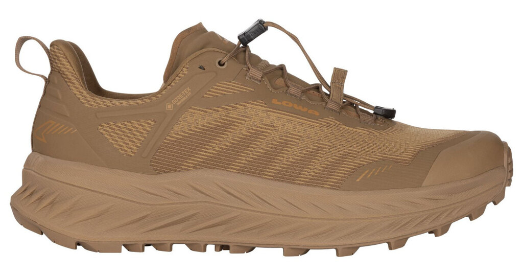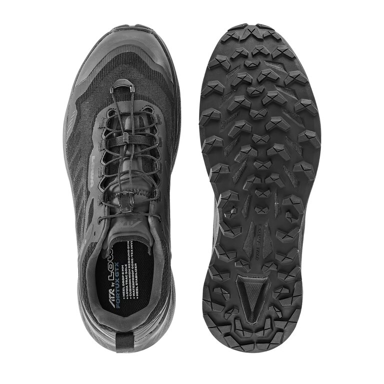 | Detalii materialului | Material superior: microfibră țesută jacquard Membrană: Gore-Tex® Invisible Fit Branț: ATR (= All Terrain Running) - tip special conceput pentru alergare și drumeții în teren variat Talpă intermediară: LOWA® DynaEVA® - spumă EVA stratificată brevetată Talpă: cauciuc - LOWA® Trac C |