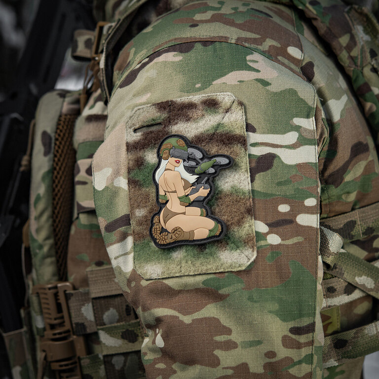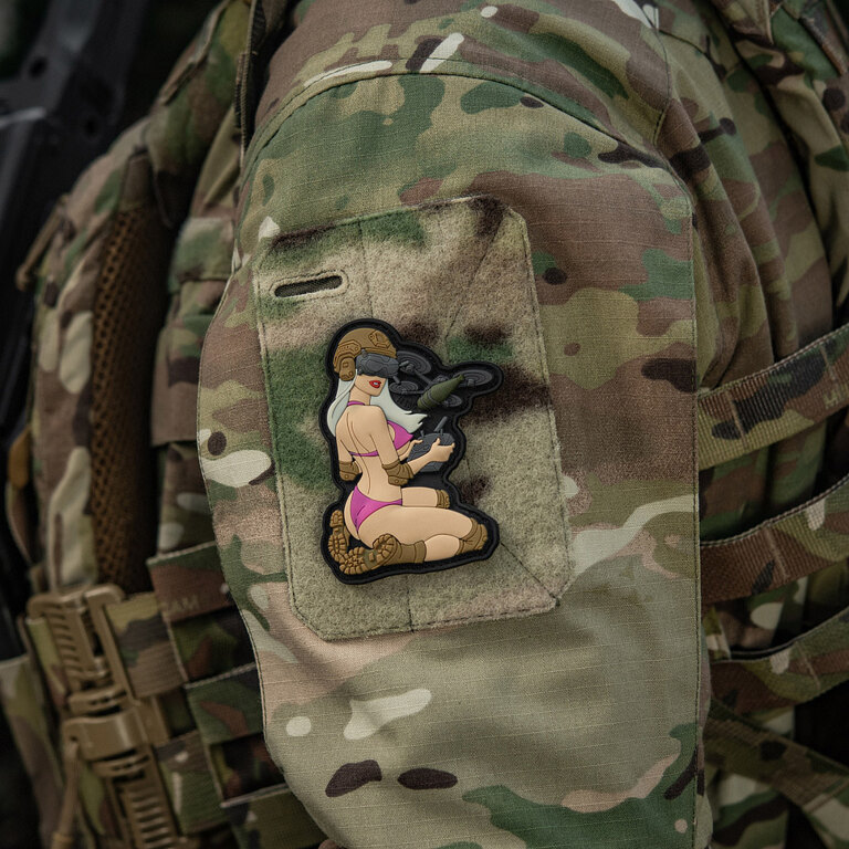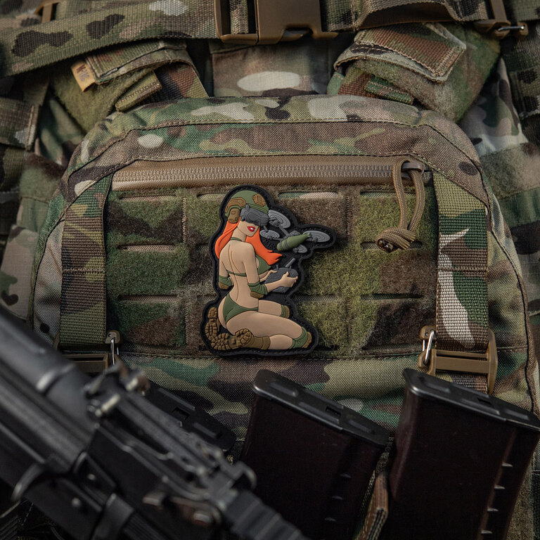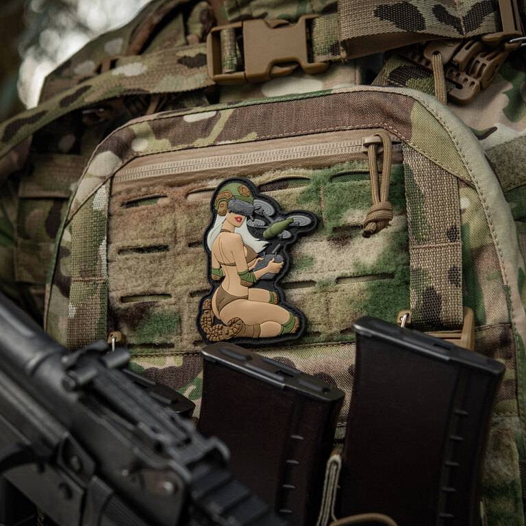 Stil Pin-Up cu un mesaj puternic. Insigna Tactical Girl FPV Dron M-Tac îmbină aspectul seducător, forța caracterului și simbolismul clar. Combinația izbitoare de frumusețe, determinare și tactică modernă atrage imediat atenția și adaugă echipamentului tău o notă originală.