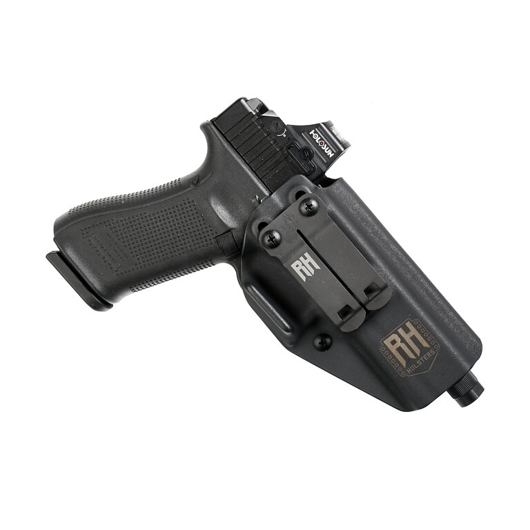 Carcasă Kydex modernă RH Holsters IWB Sharky pentru Glock 17 / 34 / 19 / 26 oferă confort și permite purtarea ascunsă a armei pe partea interioară a taliei.