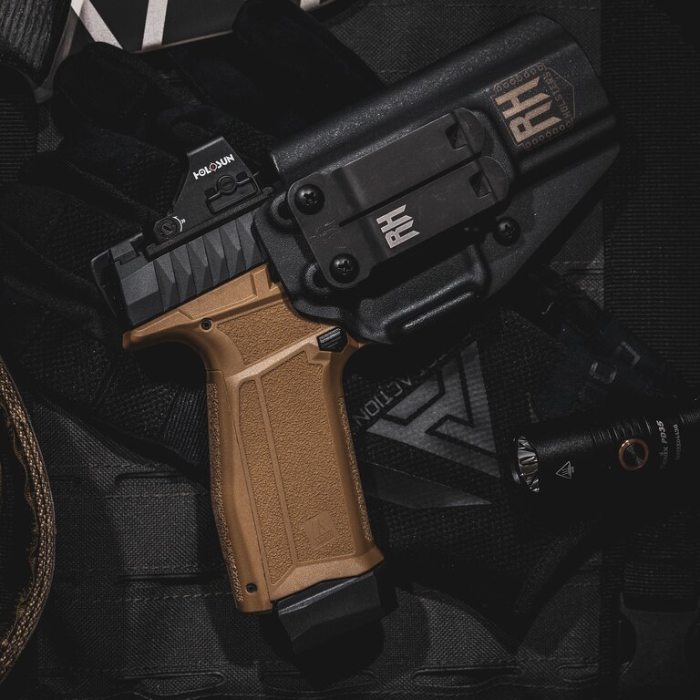 Construcția universală a carcasei permite purtarea și a armelor cu țeavă prelungită/filet, compensator sau cu colimator. Un avantaj al execuției deschise este și curățarea ușoară.