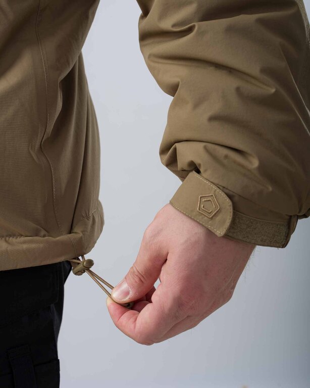 | Specificații suplimentare | Închidere principală cu fermoar cu dublu sens Guler înalt de tip tunică Glugă reglabilă ascunsă în guler sub fermoar Cusăturile dublate și fermoarele impermeabile cresc rezistența la apă. Margine inferioară reglabilă Mansetele mânecilor ajustabile cu ajutorul benzii velcro 1 buzunar mare în stânga cu deschidere verticală închisă cu fermoar 2 buzunare sus pe mâneci cu deschidere verticală închise cu fermoar 1 buzunar interior pe partea stângă cu deschidere superioară, închis cu fermoar Panouri cu Velcro pentru patch-uri la buzunarele de pe mâneci Se poate spăla la mașină la 30 °C, program normal A nu curăța chimic, a nu înălbi, a nu usca în uscător, a nu călca |