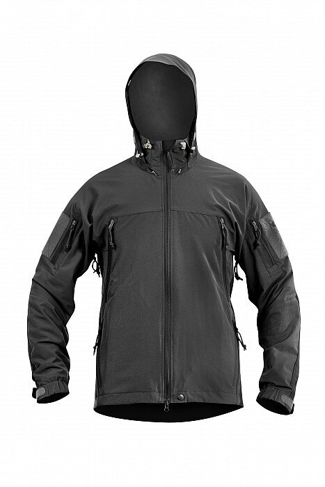 Noshaq are un design asimetric, partea din spate este alungită, mânecile sunt anatomic profilate, iar manșetele sunt ajustabile cu o bandă velcro, cusăturile sunt plate și în zona subrațului se găsesc orificii de ventilație cu fermoar – toate acestea garantează un excelent confort la purtare. Închiderea jachetei se face cu un fermoar cu două căi. Jacheta dispune de un total de 6 buzunare – 2 sunt situate pe piept, 2 jos la laterale și 2 sus pe mâneci. Toate buzunarele au acces cu fermoar clasic. Pe buzunarele de pe mâneci găsim panouri velcro pentru fixarea ecusonului de identificare sau a altor ecusoane preferate și personalizarea jachetei. În guler se ascunde o glugă fixă cu ajustare.