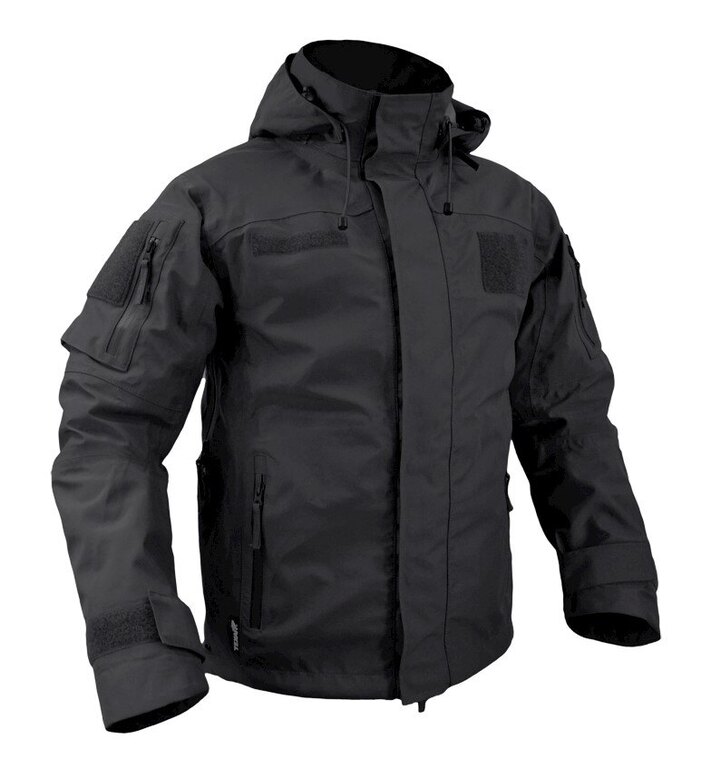 Jacheta are un croi modern și anatomic și oferă un confort excelent la purtare. Are orificii de ventilație sub brațe pe ambele părți, închise cu fermoar în două direcții, care oferă confort în condiții mai calde sau la activități intense când transpiri mult. Rezistența jachetei la influențele exterioare nefavorabile este asigurată de nylon ca strat superior al laminatului folosit. Rezistența este sporită de membrana impermeabilă Storm-Tex, care este de asemenea foarte respirabilă și astfel oferă o gestionare excelentă a evacuării umidității. Închiderea principală a jachetei este clasică, în mijloc, cu un fermoar în două direcții, de calitate și rezistent, pe întreaga lungime acoperit cu o fâșie de material închisă cu capse. Acest fermoar este prevăzut cu manșon pe ambii cursorii pentru o deschidere ușoară a jachetei. Toate fermoarele exterioare sunt impermeabile pentru protecție maximă împotriva influențelor exterioare. Jacheta are un guler înalt care protejează împotriva vremii nefavorabile și a prafului. Jacheta este prevăzută cu glugă, care se adaptează cu un șnur și este detașabilă. Strălucirea vremii nefavorabile protejează purtătorul jachetei și prin cusături lipite și astfel se poate afirma cu siguranță că jacheta nu este deloc permeabilă.
