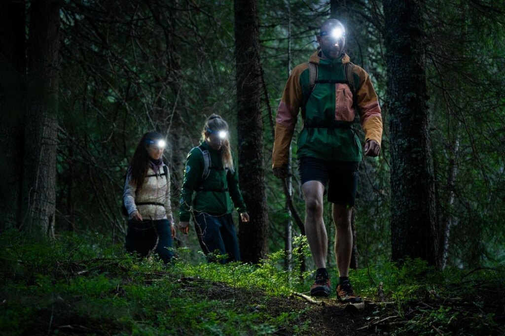 Coneul larg și uniform de lumină asigură o iluminare plăcută a împrejurimilor – fie că ești la montarea cortului, într-o drumeție de seară sau citind în sacul de dormit. Trei niveluri de putere permit alegerea raportului ideal între durata de iluminare și intensitate. Lumina roșie menține vederea nocturnă și nu orbește pe nimeni din jur.