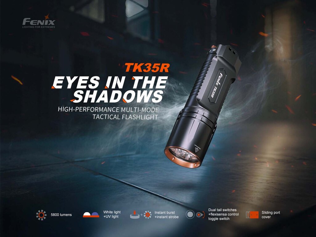 Fenix TK35R este destinat situațiilor în care este nevoie de lumină albă puternică și iluminare UV precisă. Combină performanța ridicată, durata lungă de viață a bateriei și un sistem de control care reacționează imediat. Datorită corpului său plat, se potrivește stabil în mână și oferă control chiar și atunci când purtați mănuși. Construcția sa este pregătită pentru terenuri dificile, fiind potrivită pentru serviciu, căutări și mișcarea de noapte în natură.
