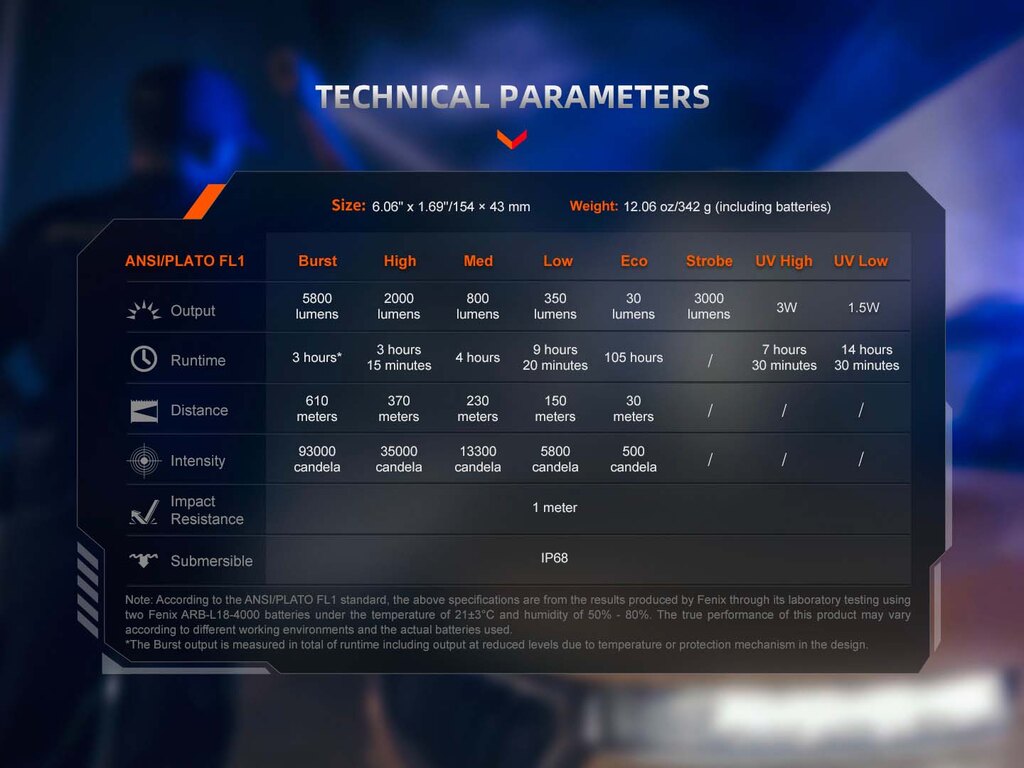 | Parte a livrării | Lanternă, curea de mână, 2x acumulator ARB-L18-4000, husă, cablu de încărcare USB-C, inel O de rezervă |