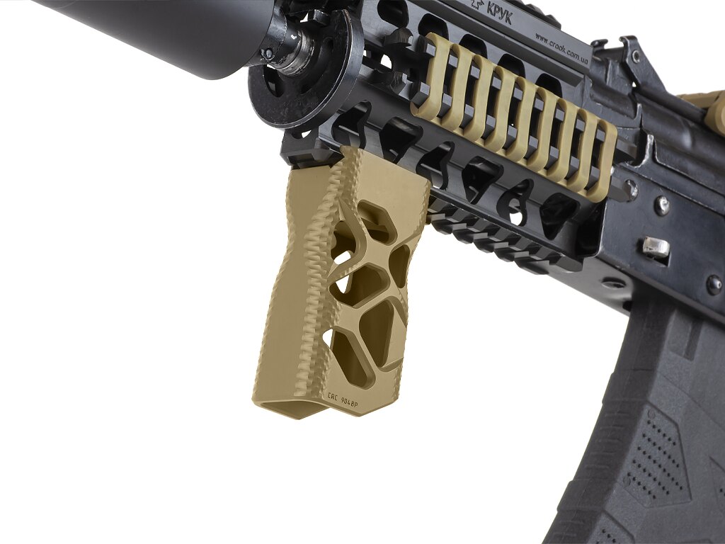 Mânerul Kpyk CRC 9048P ajută la ghidarea fermă a armei și oferă sprijin în orice poziție. La tragere și în timpul mișcărilor, ajută la menținerea prinderii ferme, fără alunecare sau îndoire neplăcută a încheieturii. Forma se potrivește palmii, fie că purtați mănuși sau nu.