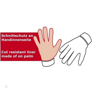 Pe palmă și în partea inferioară a degetelor se află inserții rezistente la tăiere Armor-Tex.