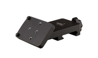 Montura permite atașarea colimatorului la un unghi de 45° lângă optica principală — ideală pentru situațiile în care aveți nevoie de o tranziție rapidă la ținte pe distanțe scurte. Axa principală rămâne intactă, adăugând optică laterală fără a interveni în vizorul principal.