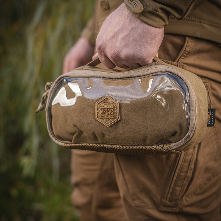 La M-Tac, utilizarea materialelor de calitate, rezistente la uzură, este deja o tradiție. Ca material principal a fost folosită Cordura 500D, care, printre altele, își menține forma și nu se deformează, chiar și atunci când este umedă. Capacul organizatorului este fabricat din PVC transparent. Pe pereții interiori ai organizatorului puteți atașa inserții modulare datorită suprafeței cu arici.