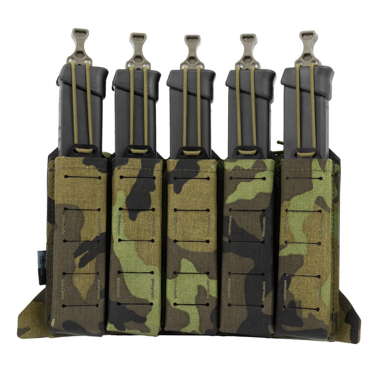 Panoul se fixează cu ușurință pe toate purtătoarele de plăci TG-CPC de la Templar's Gear. Construcția Slim Shingle economisește spațiu fără a limita accesibilitatea încărcătoarelor. A fost proiectat pentru a găzdui până la 5 încărcătoare mai mari pentru pistoale automate (de exemplu, Sig Sauer MPX, H&K UMP, CZ Scorpion EVO, .45 SMG).
