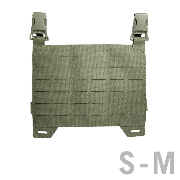 Diferite sarcini necesită echipamente diferite, iar acest panou permite înlocuirea rapidă a acestuia. Astfel, puteți pregăti mai multe panouri și le puteți schimba după nevoie. Partea frontală este echipată cu un sistem extensiv MOLLE tăiat cu laser. Datorită acestuia, pot fi atașate nu doar diverse tocuri, ci mai ales pouch-uri cu încărcătoare. Panoul în sine poate fi atașat ușor la suportul de plăci prin intermediul capsele rapide și fermoarul velcro. Folosind un material robust Cordura 700 den, se obține o durată de viață lungă a produsului. Panoul este disponibil în două dimensiuni, pentru dimensiunile corespunzătoare ale suporturilor de plăci.