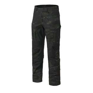 Baza acestor pantaloni de luptă este materialul NyCo Ripstop cu un pattern camuflaj Multicam. Acest material este compus pe jumătate din bumbac și jumătate din nylon și are un finisaj ripstop natural, ceea ce îl face mai rezistent la rupere. Și când o fisură totuși apare, datorită acestui finisaj nu se extinde mai departe. Zona genunchilor este, în plus, întărită cu țesătură Cordura 500D cu deschideri pentru inserțiile de protecție.