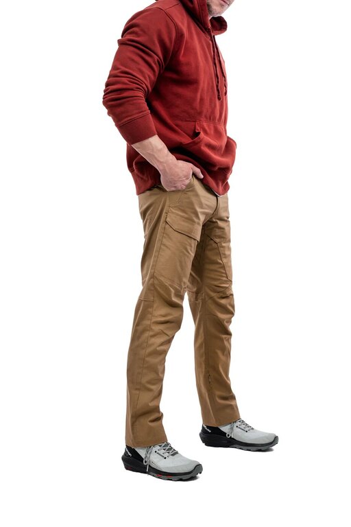 Durabilitatea și rezistența materialului sunt asigurate de elemente tehnice, cum ar fi fermoarele YKK Lenart rezistente, un fermoar mai puternic sau aplicațiile întărite pentru cuțite. Aplicațiile întărite împiedică cataramele și tocurile pentru cuțite să deterioreze buzunarele. Bucla pentru centură oferă spațiu suficient pentru tocuri AIWB sau IWB.