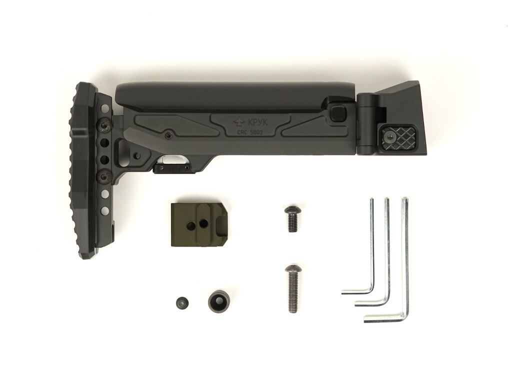 Stabilitate, reglare și pliere într-un singur corp. CRC 9037R-MIL combină o pată telescopică cu un adaptor pliabil pe partea dreaptă și este destinat platformelor AK care deja din fabrică folosesc o pată pliabilă. Nu este pentru toată lumea – dar cine știe, știe.