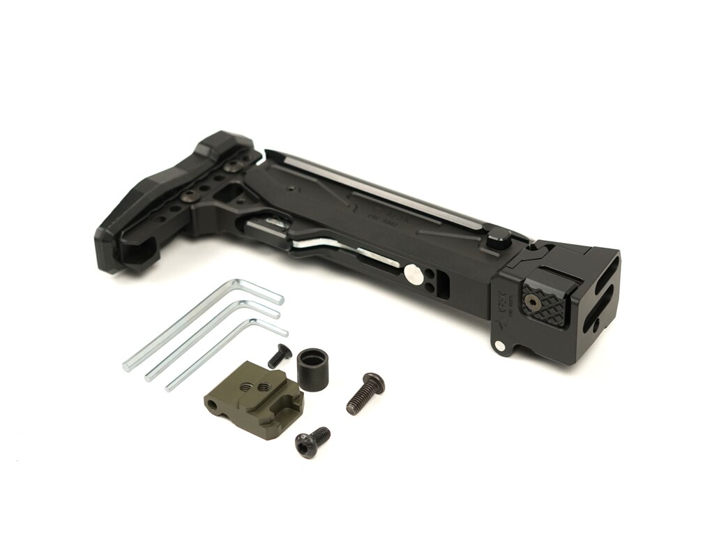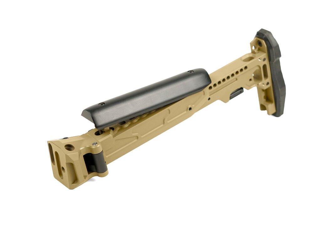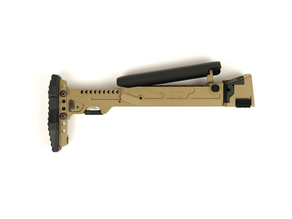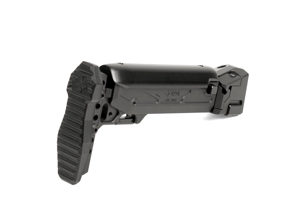 Stabilitate, reglare și pliere într-un singur corp. CRC 9037L-MIL combină un pat telescopic cu un adaptor pliabil pe partea stângă și este destinat platformelor AK care au deja din fabrică un pat pliabil. Nu este pentru orice AK – dar cine știe, știe.
