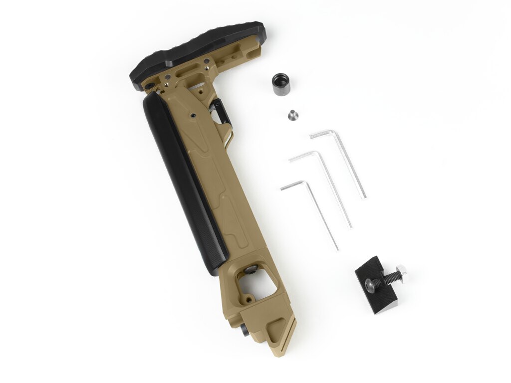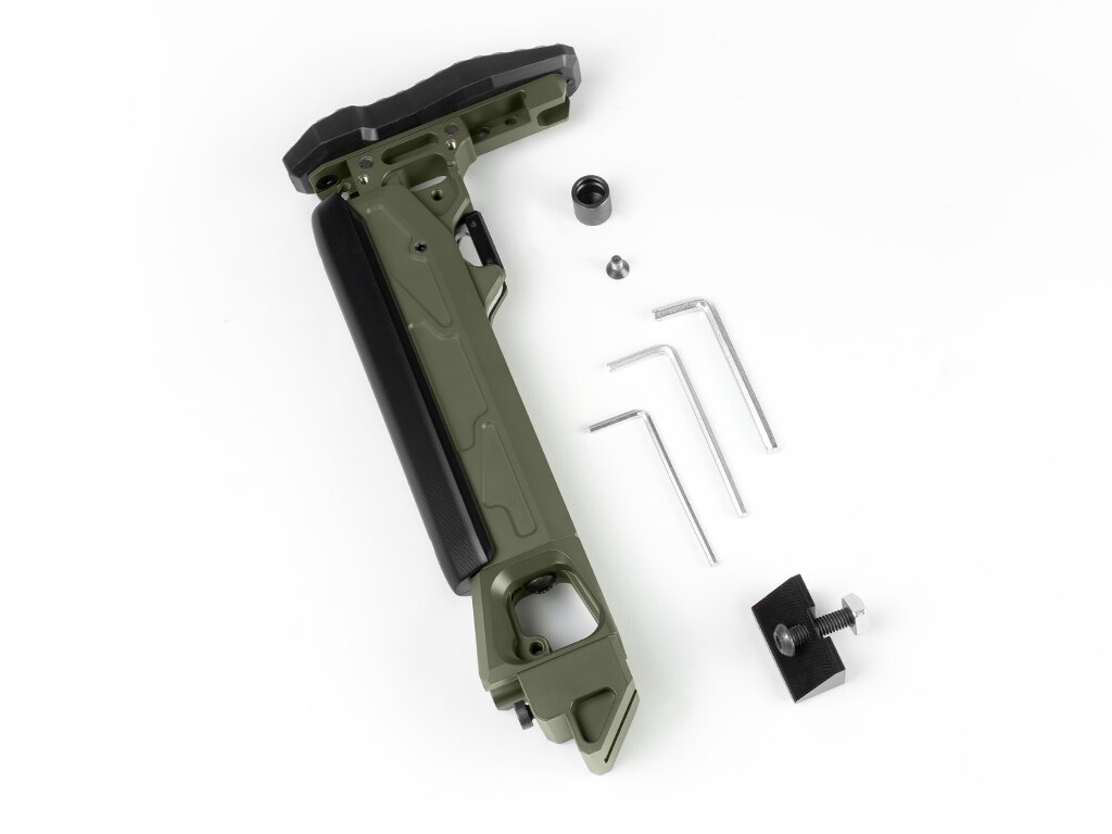Patul oferă trei opțiuni de ajustare independente: lungimea, înălțimea obrazului și înălțimea suportului de umăr. Acest lucru îl face adaptabil la diferite staturi și stiluri de tragere. Patru poziții fixe ale obrazului și ajustarea înălțimii suportului de umăr permit o susținere fină fără improvizații sau intervenții în construcția patului.